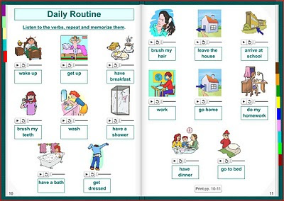 You can save and print the pictures with the daily routine vocabulary. Later, you can glue each one on the worksheet below with the time you do that activity.