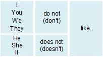 E.g. He likes / He doesn't like.